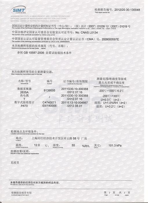 鹽霧腐蝕試驗箱檢測報告-上海計量院-富金實業(yè)