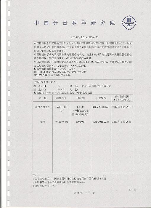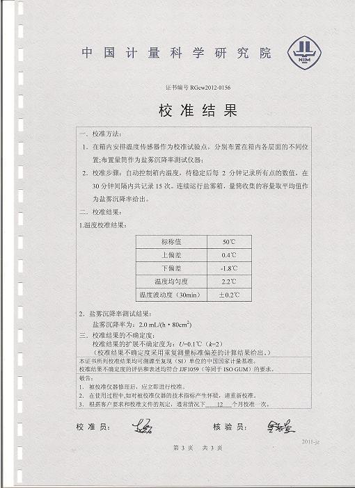 >>鹽霧腐蝕試驗箱校準證書-中國計量院-江河幕墻