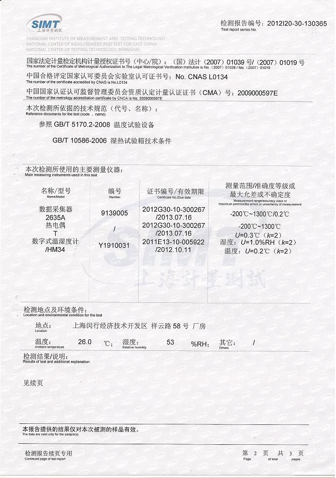 ·恒溫恒濕試驗(yàn)箱檢測(cè)報(bào)告-上海計(jì)量院-天威保變