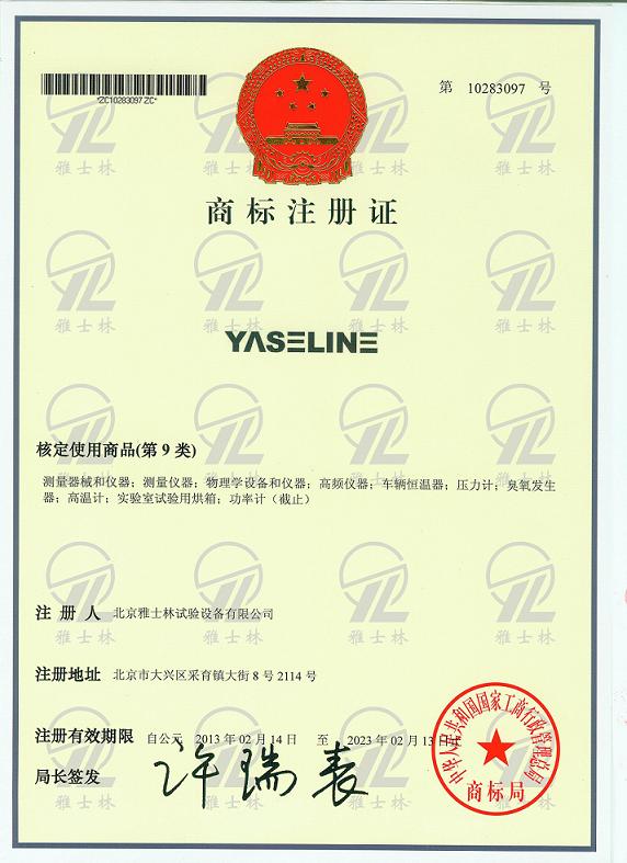 近日,北京雅士林試驗設備有限公司(以下簡稱“雅士林儀器”)注冊的“YASELINE”英文商標,獲得國家工商行政管理總局商標局注冊通過。此次注冊通過的“YASELINE”商標為雅士林儀器近年來全力打造高端試驗箱品牌。 多年來,雅士林儀器堅持貫徹品牌戰(zhàn)略,進行全方位的市場開拓,全力打造“雅士林試驗箱”高端品牌。雅士林儀器實施以品牌求發(fā)展的品牌經(jīng)營戰(zhàn)略,本著“品質(zhì)卓越,盡善盡美”的質(zhì)量理念,強化員工素質(zhì),加強服務流程的完善和服務技能的提升,建立以顧客為導向的服務系統(tǒng)和服務標準。注重產(chǎn)品技術(shù)創(chuàng)新,追求高品質(zhì)的產(chǎn)品研發(fā),截至目前公司共獲得國家發(fā)明、實用新型與外觀專利多項,引領(lǐng)了國內(nèi)環(huán)境試驗設備行業(yè)技術(shù)創(chuàng)新的高度,廣大用戶對“雅士林試驗箱”品牌信賴有加,市場占有率逐年提高。 YASELINE商標的取得,一方面有利于公司加強對品牌及注冊商標的保護,是對雅士林儀器品質(zhì)實力、品牌價值、品牌建設成果的肯定,也是對雅士林儀器資產(chǎn)規(guī)模、市場占有率、品牌影響力、社會口碑等綜合實力的高度肯定;另一方面對于提高公司品牌和市場知名度,打造高端環(huán)試品牌,開拓國際市場等具有積極意義。